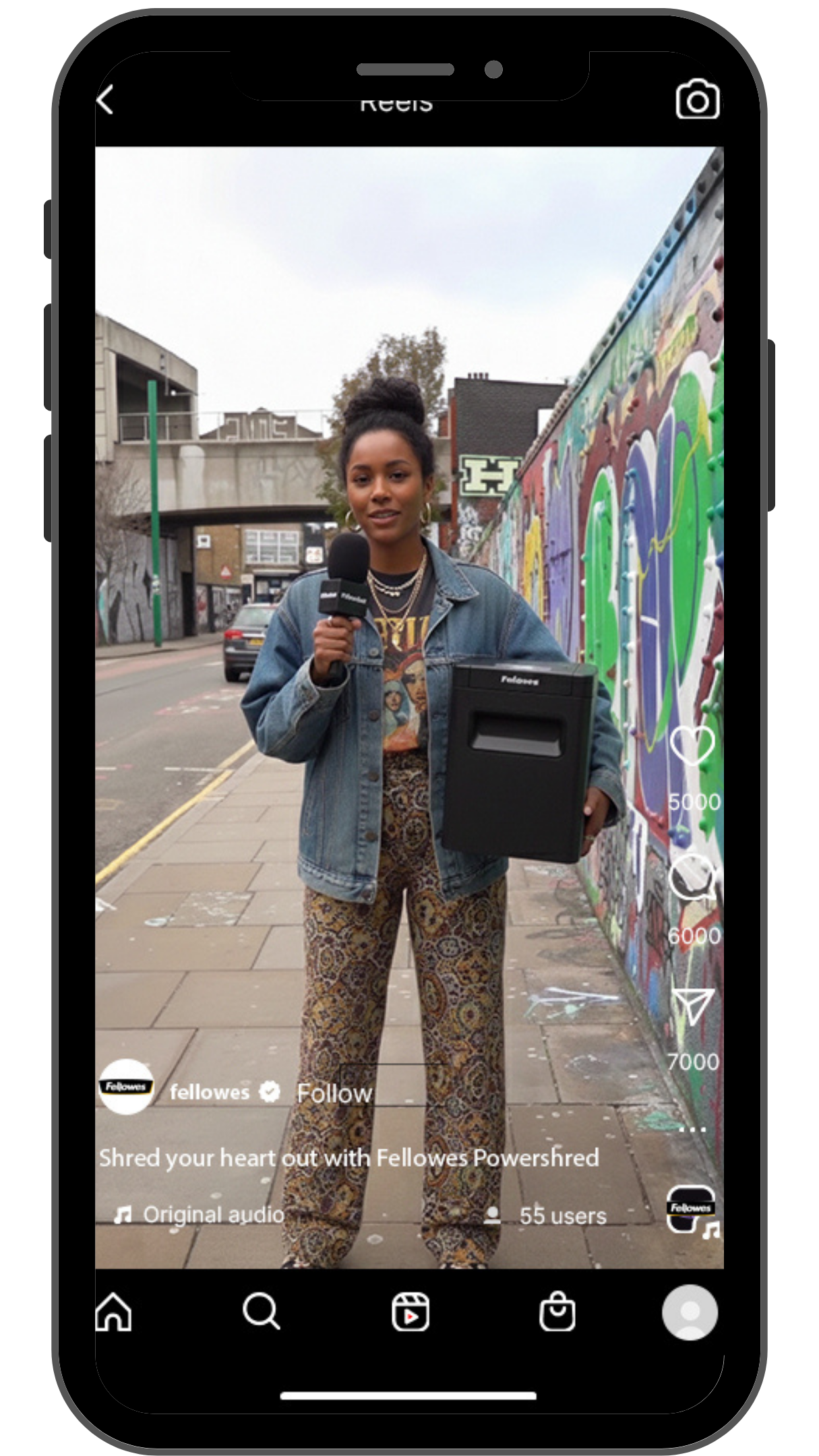 On social media, Fellowes will feature a series of videos where a street interviewer will walk around with a battery operated shredder, allowing people to shred something they’ve been holding on to.