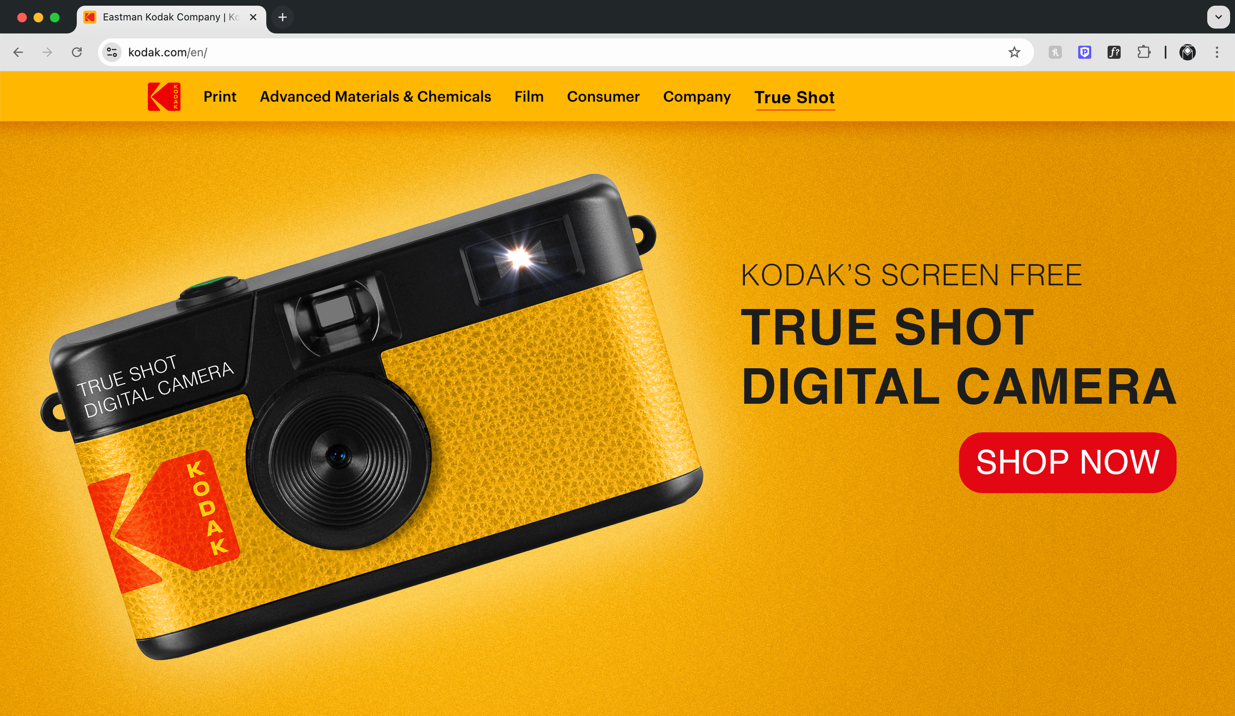 To meet the moment, we created a new product, the Kodak TrueShot camera, introducing a screen-less, honest way to bring back the Kodak Moment.